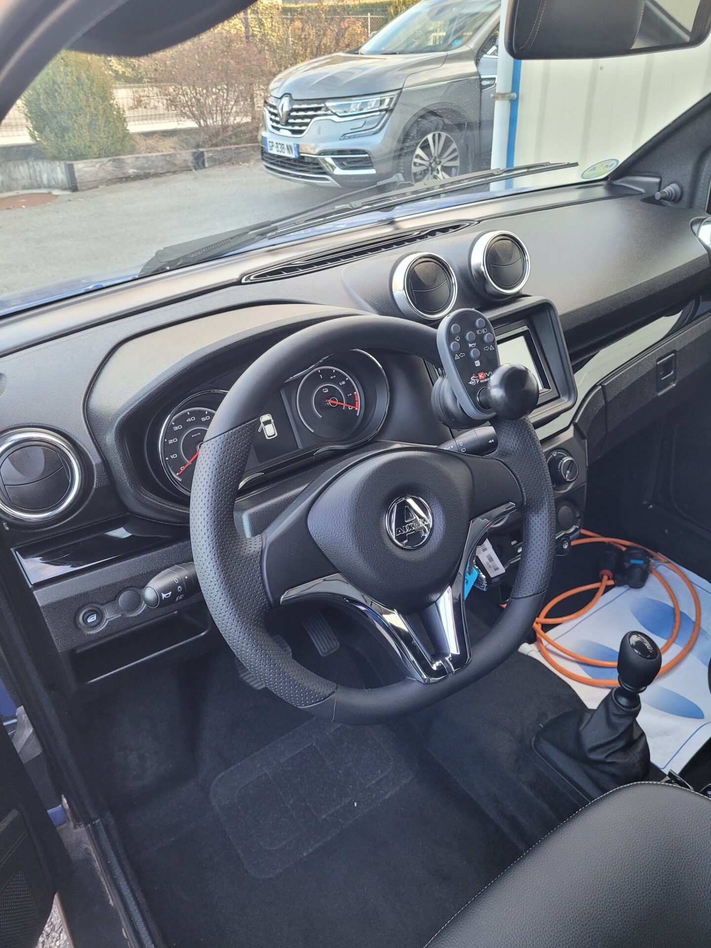 Pour sécuriser la conduite, nous avons installé une poignée télécommande multifonction Lemhdis by Sojadis. Directement fixée au volant, elle permet de gérer sans effort les clignotants, les phares, les essuie-glaces et le klaxon.